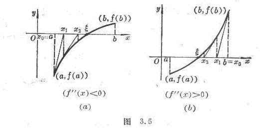 Let f ( x ) be continuous on [ a , b ] and also be continuous, and 1 0, 1 0 , f ( a ) f ( b )<0 (let f ( a )<0, f ( b )>0 ) , through the point ( a , f ( a )) (or the point ( b , f ( b ) ) ) as a tangent to the curve:![]()