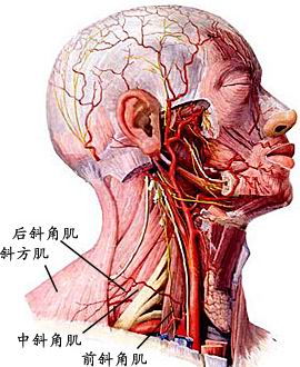 (2)颈外动脉:沿胸锁乳突肌深面上行,穿腮腺实质,移行为颞浅动脉和上颌动脉两大终支。