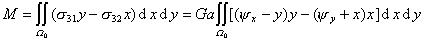 [柱体的扭转]   同圆柱扭转一样,假定,体力与侧面的面力不计,只在两端施加力偶矩M,其扭矩的位移分量可写成
