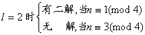 [二次同余式的解数]  l>0, pn,p为奇素数,则二次同余式