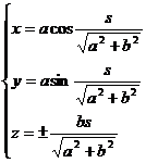 式中为角速度,h称为螺距,称为螺旋角,式中对右螺旋线取正号,对左螺旋线取负号,如果以弧长s为参数,其方程为