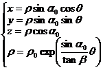 式中为圆锥顶角的一半,为螺旋角,都是常数.由于这种曲线投影到Oxy平面上是对数螺线,所以又称其为圆锥对数螺线.