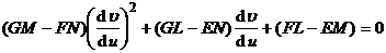 FG为曲面的第一基本量(在点M取值)。坐标线u=常数和v=常数的交角决定于