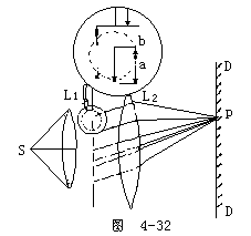 N1N2分别为S1S2在屏幕上的投影点,ON1N2的中点,并设OP=x。从图中直角三角形S1PN1S2PN2,可知