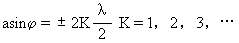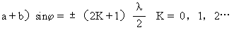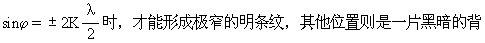 时,由各个狭缝所射出的光波都将各自地由于干涉而抵消,形成暗条纹。当然也就谈不上缝与缝之间的干涉作用,在这里即使符合明干涉条纹条件的也没有明条纹出现。由此可见在光栅衍射中,仅当j角满足(a+b