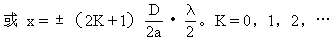 这里K=0相应于在O点处的中央明条纹。K=1K=2,…等等相应的明条纹分别称为第一级、第二级、…明条纹。如果P点为暗点,按干涉条件,有