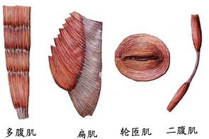 每块肌都由肌腹和肌腱两部构成。肌腹由肌纤维构成,具有收缩功能。肌腱由致密结缔组织构成,阔肌的肌腱又称腱膜。