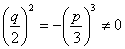 >0时,有一个实根和两个复根;=0时,有三个实根,当p=q=0时,有一个三重零根;当时,三个实根中有两个相等;<0时,有三个不等的实根.