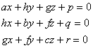 当l,m,n变动时,这个方程表示一个平面把,由此二次曲面的直径平面组成一个平面把.把内任一平面都通过下列三个平面的交点: