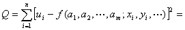 所谓最小二乘法,就是要求上面n个误差在平方和最小的意义下,使得函数u =f (a1 ,a2 ,···, am ; x , y ,···)与观测值u1 , u2 , ··· ,un最佳拟合。也就是参数a1 ,a2 ,··· ,am应使