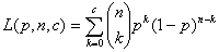 设样本容量为n,其中次品个数为k。k可作为判断批量为N的产品质量的指标。现在是如何合理地选取n和小于n的正整数c,使得按照“