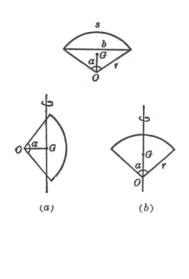 r为半径,b为弦长,为弧s所对应的圆心角的度数,为其弧度数,O为圆心