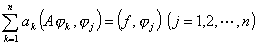 式中ak是待定常数,把un代入方程Au=f中的u,两端与j   (j=1,2,,n)求内积,得 akn个代数方程