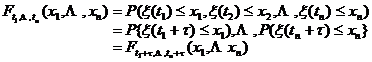[ Stationary Process ]   If for n =1,2, L , any t m Î T ( m =1,2, L , n ) and any τ ( t m + τ Î T , m =1,2, L , n ) , the equation