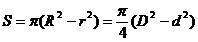 R is the outer radius , r is the inner radius , D is the outer diameter , d is the inner diameter , and O is the center of the circle