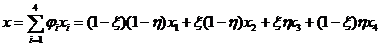 is obviously desirable for the unit square , , which is bilinear , that is, linear for either ξ or η . Since the local coordinates of the vertices are 1 or 0 , the type function can also be written uniformly as![]()