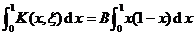 It is exact at the endpoints x = 0 and x = 1 , and to determine the coefficient B , it can be required that the integral of the kernel over [0,1] is equal to the integral of its approximate expression, i.e.