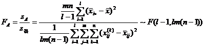 where F AB and F B represent the significance of the influence of factor A and factor B , respectively, and