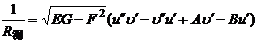 If the geodesic line = constant intersects at a point O , indicating the intersection angle between the geodesic line and the geodesic line , it is called geodesic polar coordinates, and the geodesic parallel line at this time is called a geodesic circle, and its radius is equal to u .![]()