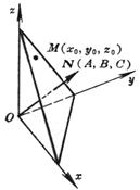The plane passes through the point M ( x 0 , y 0 , z 0 ) and the number of directions of the normal N is A , B , C