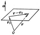 The plane passes through the end point of the vector radius r 0 and is perpendicular to the known vector a , r is the vector radius of any point on the plane