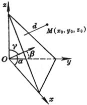 where d is the distance from point M ( x 0 , y 0 , z 0 ) to the plane