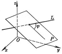 where j is the angle between the straight line L and the plane P